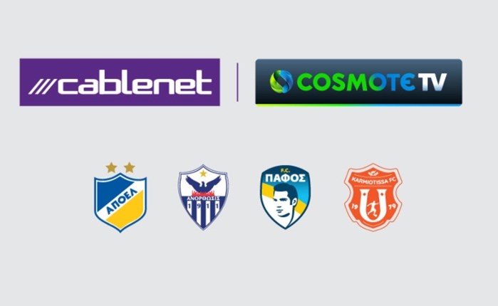 Η Cablenet και η COSMOTE TV ανακοινώνουν την συνεργασία τους για την αποκλειστική μετάδοση των κορυφαίων αγώνων του Παγκύπριου Πρωταθλήματος Ποδοσφαίρου τώρα και στην Ελλάδα. Οι επιλεγμένοι εντός έδρας αγώνες των Κυπριακών ποδοσφαιρικών ομάδων του ΑΠΟΕΛ, της Ανόρθωσης, της Πάφος FC και της Καρμιώτισσας, θα προβάλλονται ζωντανά και αποκλειστικά στα κανάλια COSMOTE SPORT για τη σεζόν 2023-24.