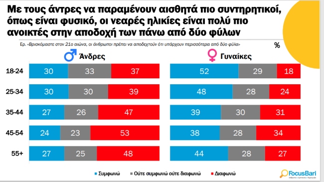 *Είναι πιο δεκτικές από τους άνδρες στο ότι σήμερα υπάρχουν περισσότερα από δύο φύλα.