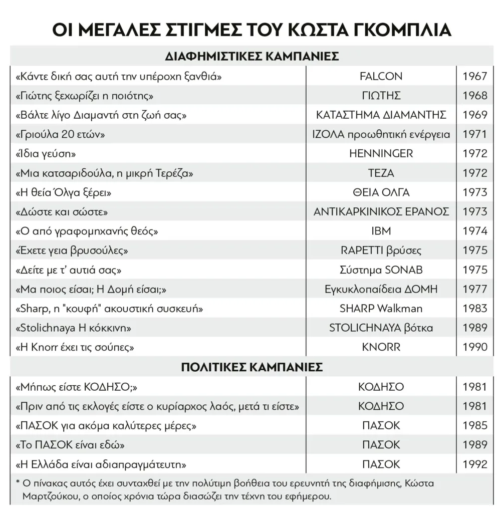 Να πω, λοιπόν, ότι ο Κώστας, από τη δεκαετία του 1960 και για σαράντα χρόνια, υπήρξε από τους κορυφαίους κειµενογράφους, αυτούς που διαµόρφωσαν το σύγχρονο πρόσωπο της διαφήµισης.