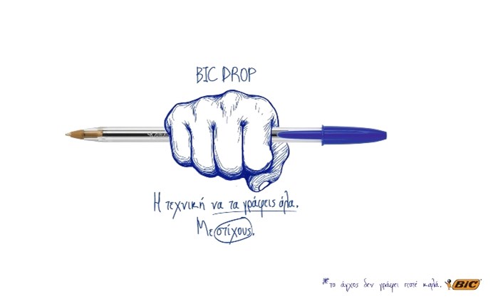 Βασισμένη σε επιστημονικές έρευνες πάνω στη δημιουργική γραφή και τη χειρογραφία, η καμπάνια καλεί τους μαθητές να κάνουν BICDROP.