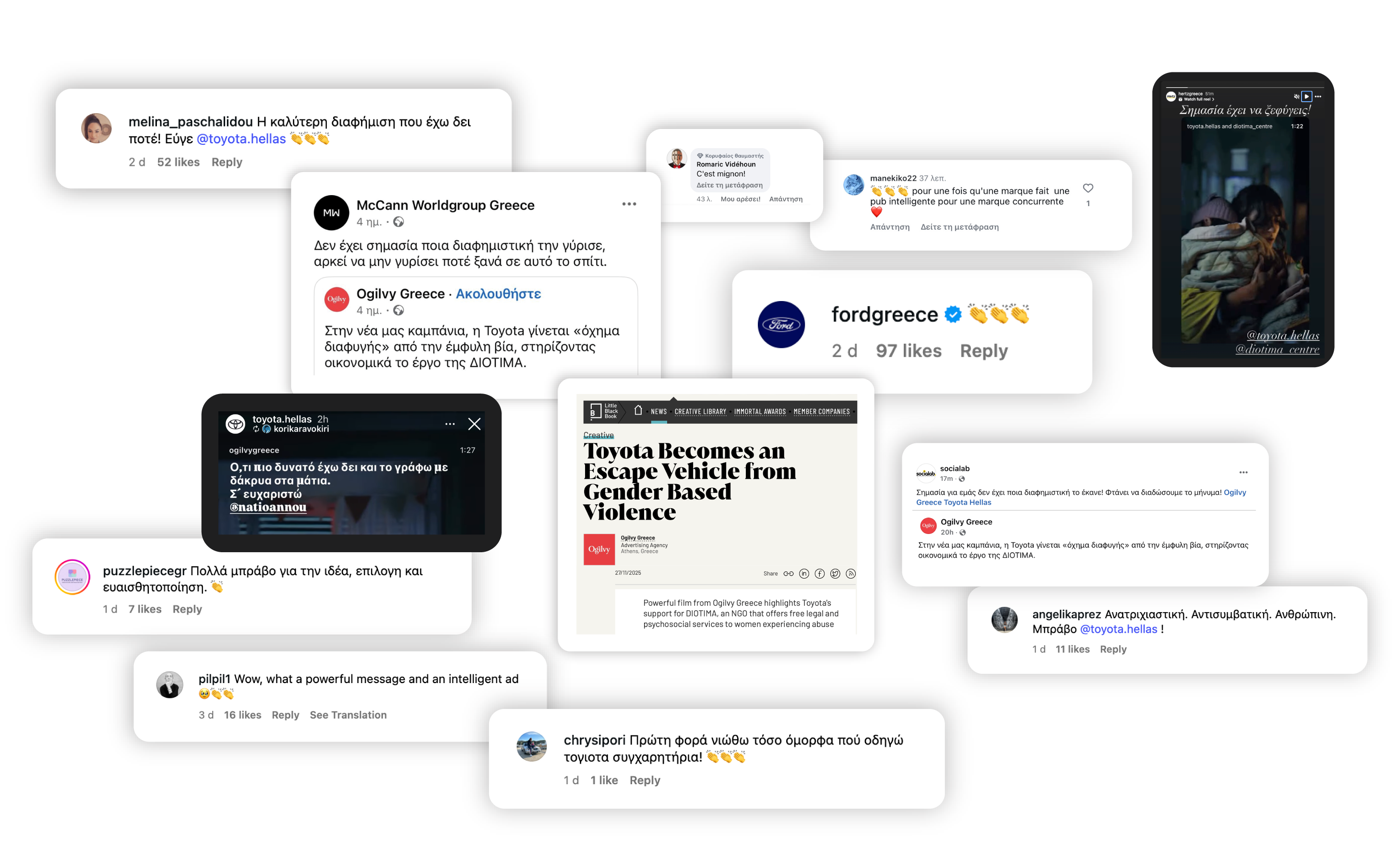 Η καµπάνια προκάλεσε σηµαντική συζήτηση όχι µόνο στο κοινό, αλλά και στην αγορά της επικοινωνίας: Άλλα brands και άλλες διαφηµιστικές εταιρείες µοιράστηκαν οργανικά το φιλµ στα social media, χαιρετίζοντας τόσο το θάρρος της Toyota όσο και τη δηµιουργική τόλµη της Ogilvy.