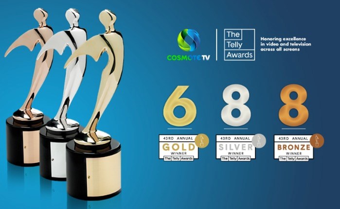 22 διακρίσεις απέσπασε η COSMOTE TV στα 43α «Telly Awards», για την πρωτότυπη προώθηση του περιεχομένου της, τη χρήση καινοτόμων τεχνολογιών και τη δημιουργική εικαστική προσέγγιση σε εκπομπές και pop-up κανάλια. Στον παλαιότερο θεσμό τηλεόρασης & video, που διεξάγεται στη Νέα Υόρκη και αναδεικνύει κάθε χρόνο τα καλύτερα projects τηλεοπτικών δικτύων και πλατφορμών από ολόκληρο τον κόσμο, η COSMOTE TV έλαβε 6 βραβεία Gold, 8 βραβεία Silver και 8 βραβεία Bronze.