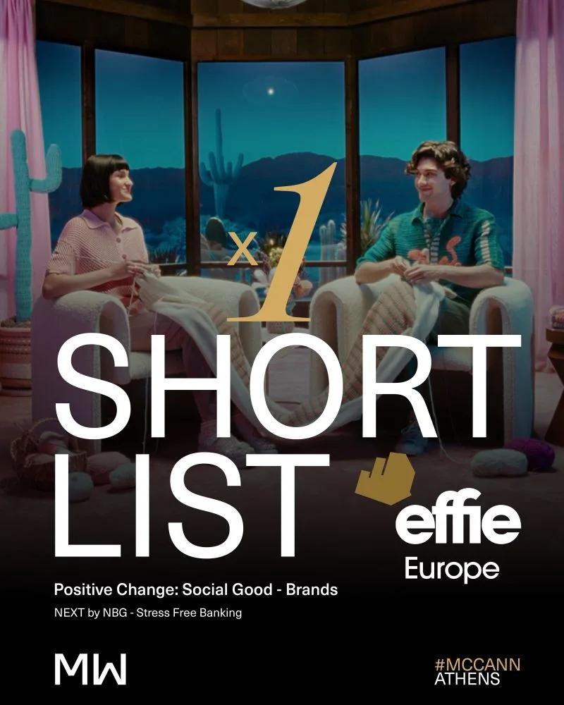 H καμπάνια “Stress-Free Banking” της McCann Athens για την Εθνική Τράπεζα είναι η μοναδική δουλειά από την ελληνική αγορά που συμπεριλήφθηκε στην shortlist των Effie Awards Europe, που ανακοινώθηκε σήμερα. Η καμπάνια θα διεκδικήσει διάκριση στην κατηγορία Positive Change: Social Good – Brands.
