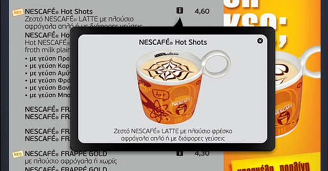 Menews αποκλειστικά από το NESCAFE!Πιο συγκεκριμένα, ο NESCAFE διαθέτει ένα νέο διαδραστικό κατάλογο, που ονομάζεται Menews προσφέροντας πολύ περισσότερα από τα κλασικά menus των cafés, με τη λίστα των προϊόντων και τις τιμές. Βασίζεται στο iPad και περιέχει πληροφορίες για τα πρωτοποριακά προϊόντα NESCAFE, ενδιαφέροντα στοιχεία για τον καφέ γενικότερα, νέες προτάσεις και τα τελευταία νέα της αγοράς.