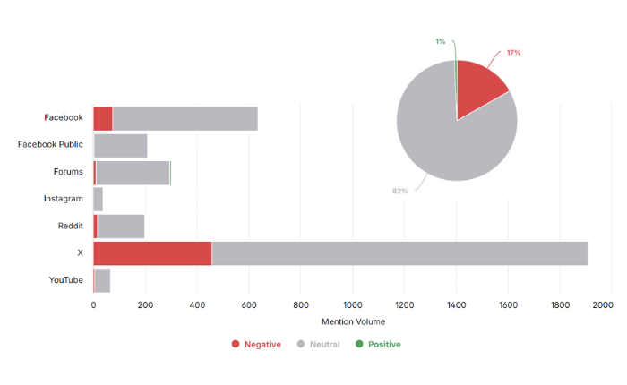 Η ανάλυση του sentiment έδειξε ότι μόνο 1% των αναφορών στα social media είναι θετικό, ενώ ένα ανησυχητικό 17% αποτελείται από αρνητικά σχόλια. Θέματα που προβληματίζουν είναι κυρίως οι χαμηλές ή παραπλανητικές προσφορές και διάφορα τεχνικά θέματα σε online παραγγελίες με προσφορές Black Friday. Μόνο το 1% των χρηστών στα social media εκφράζουν θετική διάθεση, κάτι που δείχνει ότι υπάρχει σίγουρα περιθώριο για βελτίωση στην επικοινωνιακή στρατηγική των επιχειρήσεων.