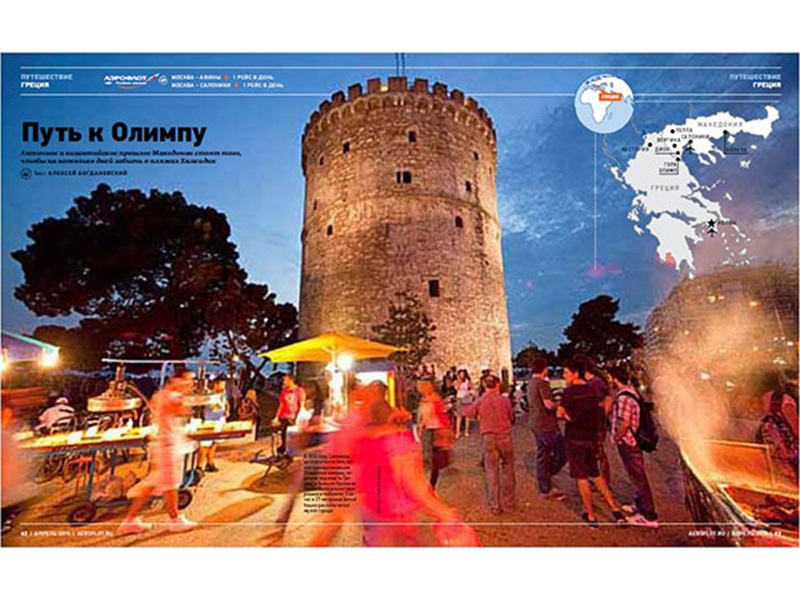 Aeroflot: Aφιέρωμα στην ΜακεδονίαTo περιοδικό της μεγαλύτερης αεροπορικής εταιρείας στην Ρωσία, Αeroflot, δημοσίευσε στο τεύχος του Απριλίου ένα τετρασέλιδο αφιέρωμα για τα αξιοθέατα και την ιστορία της Μακεδονίας.