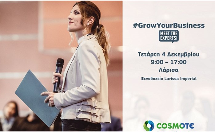 Στην Λάρισα θα πραγματοποιηθεί η επόμενη δωρεάν ημερίδα #GrowYourBusiness - Meet Τhe Experts της COSMOTE, που δίνει τη δυνατότητα σε μικρομεσαίες επιχειρήσεις και ελεύθερους επαγγελματίες να γνωρίσουν experts από διάφορους κλάδους και να αντλήσουν έμπνευση και ιδέες για την επιχείρησή τους. Μετά τις επιτυχημένες ημερίδες σε Θεσσαλονίκη, Αθήνα και Ηράκλειο Κρήτης, το «Meet The Experts» ταξιδεύει την Τετάρτη 4 Δεκεμβρίου στην Λάρισα, στο Larissa Imperial Hotel (Φαρσάλων 182).