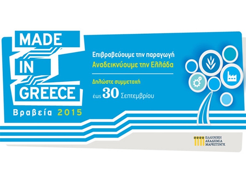 MADE IN GREECE 2015: Ολοκληρώθηκε η υποβολή συμμετοχώνΜε τη συμμετοχή πολλών επιχειρήσεων και στις οκτώ κατηγορίες βραβείων, τα “Made in Greece 2015” βρίσκονται στην προκριματική φάση αξιολόγησης. Για κάθε κατηγορία βραβείου έχει συσταθεί επιτροπή στην οποία προεδρεύει μέλος της Ελληνικής Ακαδημίας Μάρκετινγκ και συμμετέχουν εκπρόσωποι της ακαδημαϊκής κοινότητας, των χορηγών, των επαγγελματικών φορέων και των χορηγών επικοινωνίας που υποστηρίζουν το θεσμό. Να σημειωθεί ότι η διαδικασία αξιολόγησης θα διαρκέσει περίπου ένα μήνα.