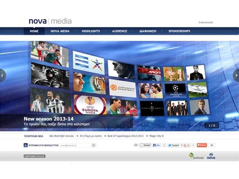 Το Novasports.gr το οποίο αποτελεί την πρόταση της Nova στην καθημερινή αθλητική ενημέρωση στο διαδίκτυο, δημιουργεί το ιδανικό περιβάλλον για προβολή και στόχευση κοινού, μέσω του αποκλειστικού περιεχομένου που διαθέτει! Live & audio streaming αγώνες, συνεντεύξεις τύπου, στιγμιότυπα SL, UCL, UEL & Euroleague , live Streaming αγώνες της Euroleague αλλά και σχολιασμό από τους δημοσιογράφους του Novasports.gr.