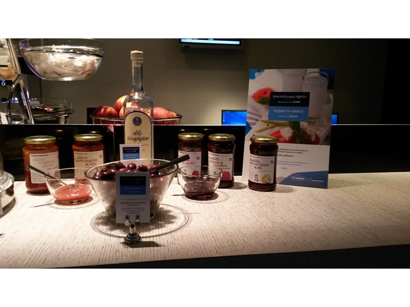 Η ενέργεια έχει ήδη ξεκινήσει, με πρώτο προορισμό-πρωταγωνιστή τη Λέσβο. Όλοι οι επιβάτες μέχρι και το τέλος Μαΐου, θα πάρουν μια αυθεντική γεύση του νησιού μέσα από παραδοσιακά προϊόντα τοπικών παραγωγών και συνεταιρισμών, όπως ούζο Πλωμαρίου, λικέρ Castanelli, Κρασί Μεθυμναίος, λαδοτύρι, μαρμελάδες, κουλουράκια ούζου/γλυκάνισου, αλμυρά κουλουράκια, εργολάβοι, αμυγδαλωτά και ελιοπιτάκια. Επιπλέον η AEGEAN πραγματοποίησε τοπικά, κινηματογραφικά γυρίσματα και δημιούργησε αφιερωματικά videos, τα οποία προβάλλονται στις οθόνες των αεροσκαφών και σε όλα τα διαθέσιμα κανάλια επικοινωνίας, με στόχο όλο και περισσότεροι επιβάτες να «ταξιδέψουν» και να γνωρίσουν τη μαγευτική ομορφιά, τις νοστιμιές και τους φιλόξενους ανθρώπους του νησιού.