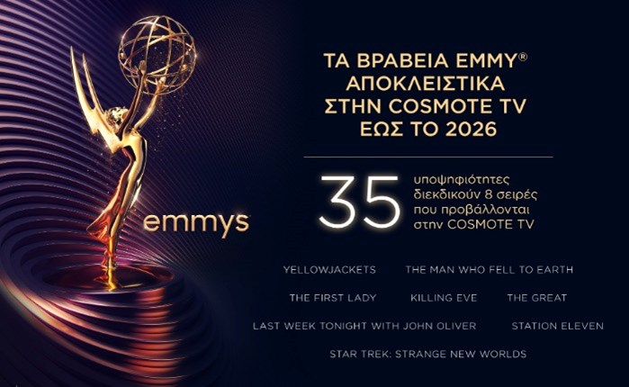 Τα βραβεία Emmy, έναν από τους μεγαλύτερους τηλεοπτικούς θεσμούς παγκοσμίως, που τιμά τις καλύτερες ερμηνείες και σειρές που ξεχωρίζουν κάθε χρόνο στη «μικρή οθόνη», εξασφάλισε αποκλειστικά για τους συνδρομητές της έως το 2026, η COSMOTE TV. To πρώτο ραντεβού των τηλεθεατών της με τα Emmy θα δοθεί την Τρίτη 13/9, για την 74η τελετή απονομής.